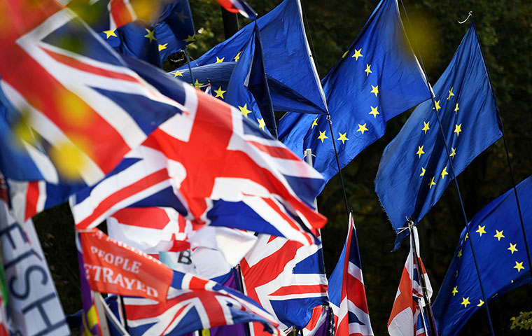 London – Oct. 2019: Pro- and anti-Brexit flags outside Parliament, London. The UK market represents about 16% of the I Fund. The rest of Europe represents about 50% of the I Fund. So in total two-thirds of the, I Fund is directly involved in Brexit uncertainty.